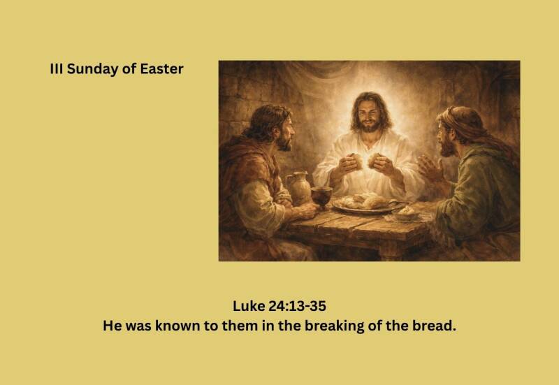 When did the disciples finally recognise Jesus? As the day drew to a close, they gathered in the house. Jesus took bread and gave it to them to share. It was the mystery of the Eucharist. They recognised him in the breaking of bread, a moment intimately connected to the Passion, Death, and Resurrection of Christ.