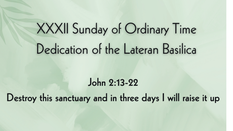Liturgia Słowa, choć różnorodna, ukazuje jedną podstawową prawdę: świątynia jest mieszkaniem i domem Boga. W pierwszym czytaniu z Księgi Ezechiela świątynia opisana jest jako źródło uzdrowienia i obfitości. W Starym Testamencie była to przestrzeń święta, gdzie Wszechmogący Bóg odbierał chwałę i dziękczynienie swego ludu, a czasami uzdrawiał tych, którzy przychodzili się modlić.